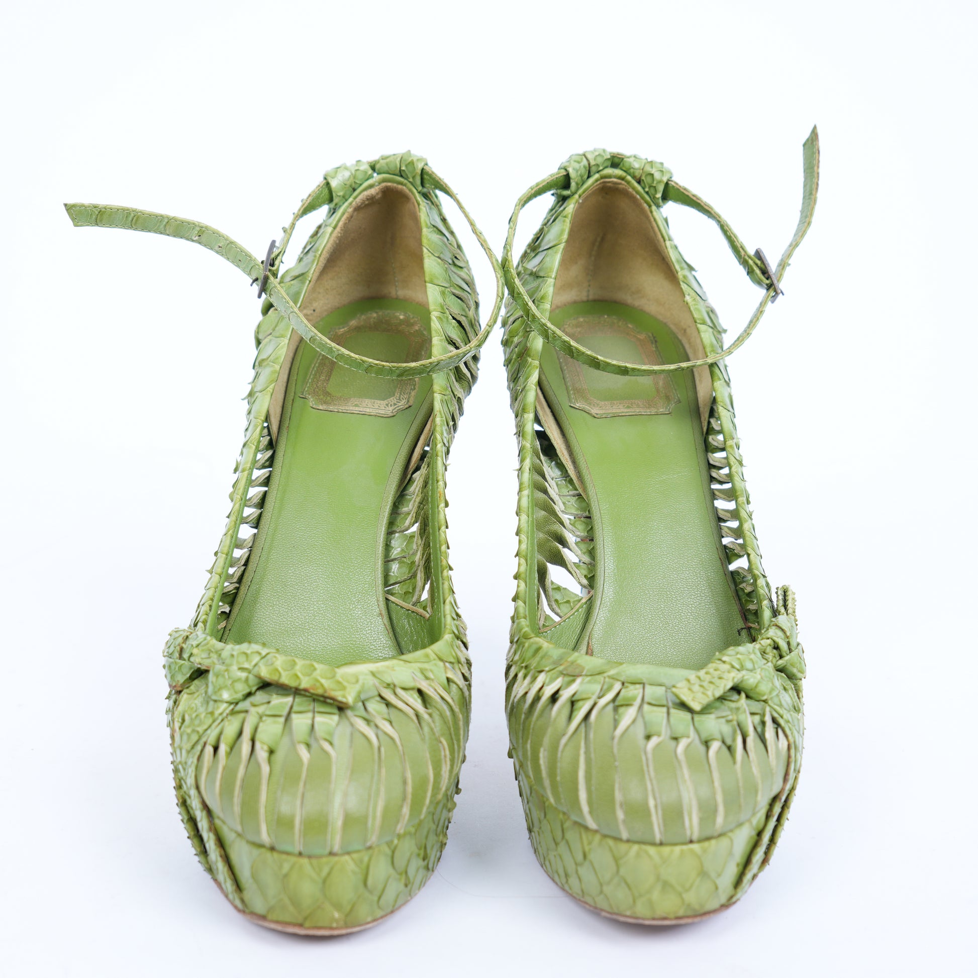 CHRISTIAN DIOR VINTAGE GREEN PYTHON PUMPS