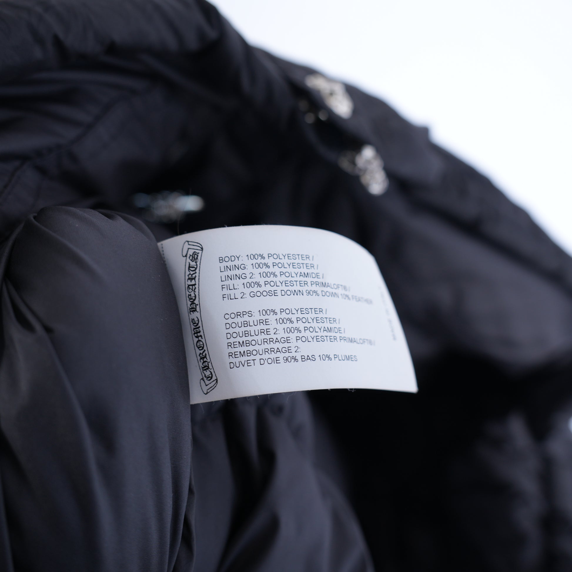 Authentic Chrome Hearts CHROME HEARTS BLACK PLUS MONOGRAM DOWN PUFFER JACKET. A sought-after Chrome Hearts piece featuring the brand's signature craftsmanship and detailing.