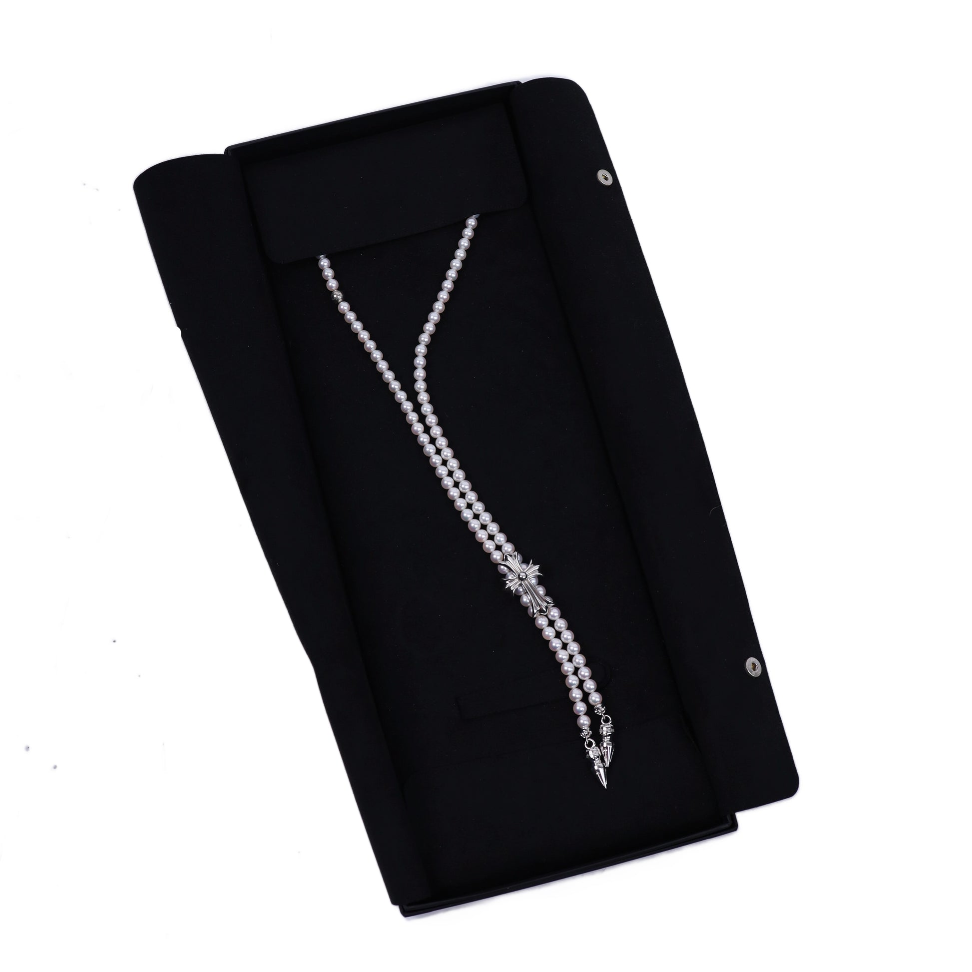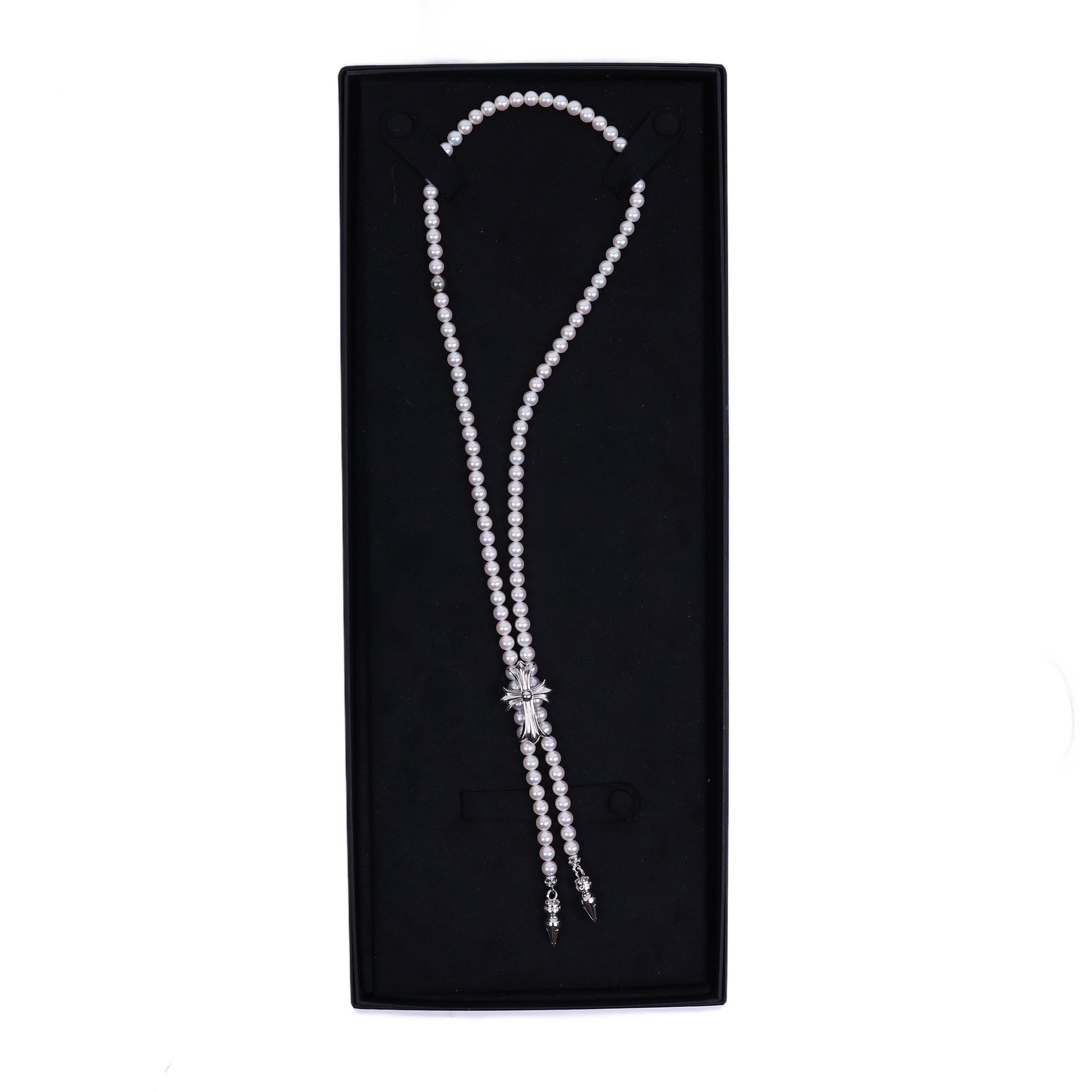 Mikimoto 18K White Gold Cross Bolo Tie Necklace